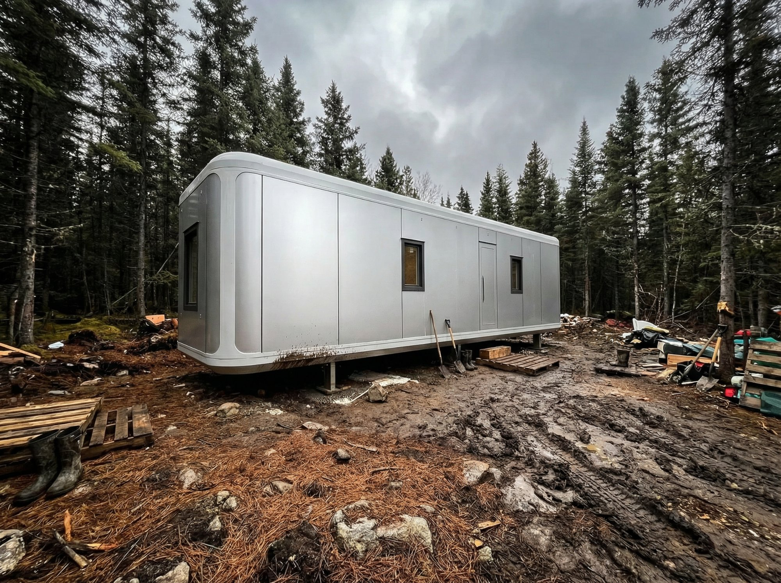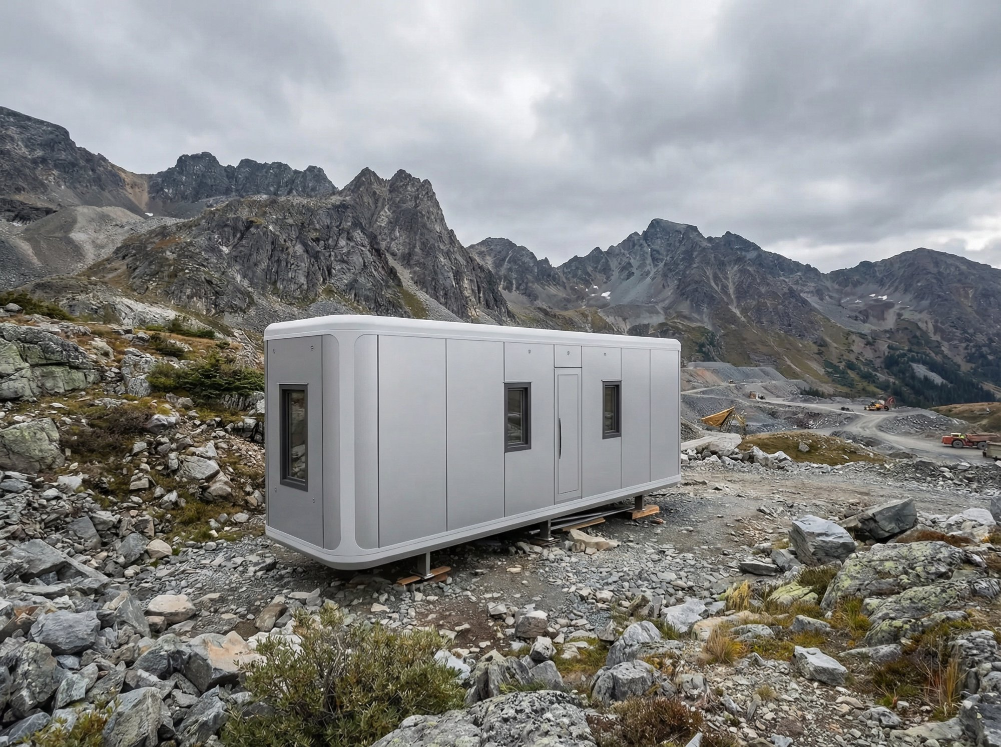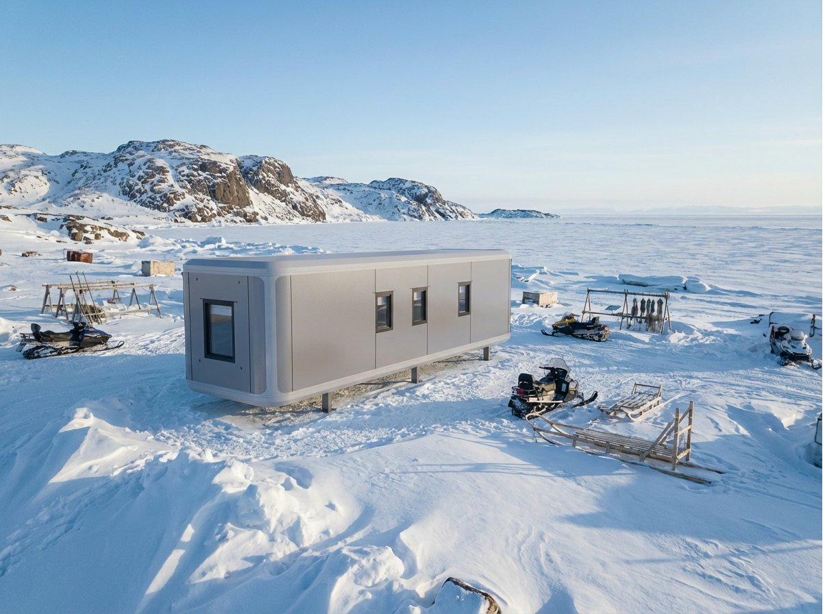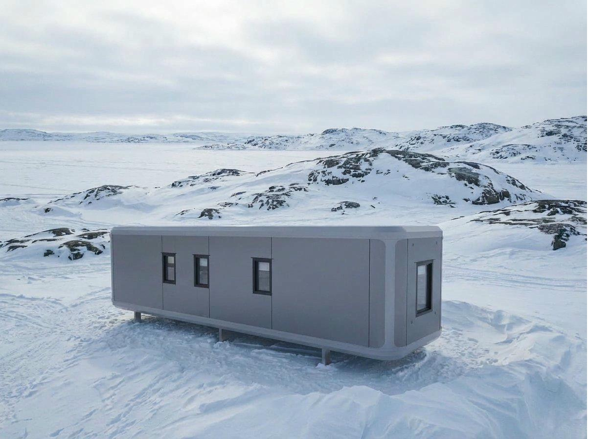 High-performance modular housing for extreme Arctic conditions, deployed for mining personnel in Nunavut, Canada.
